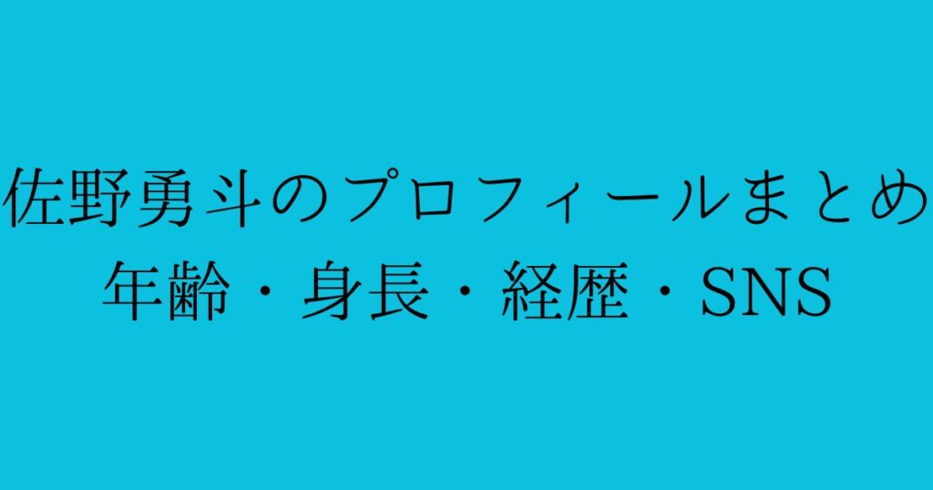 俳優・アーティストとして活躍する佐野勇斗さんについて、年齢・身長・経歴・SNS情報をわかりやすく整理しました。 ドラマや映画の出演が続くたびに検索されやすい人物のため、本記事ではまず基本プロフィールを中心にまとめています。 佐野勇斗の年齢 公... -