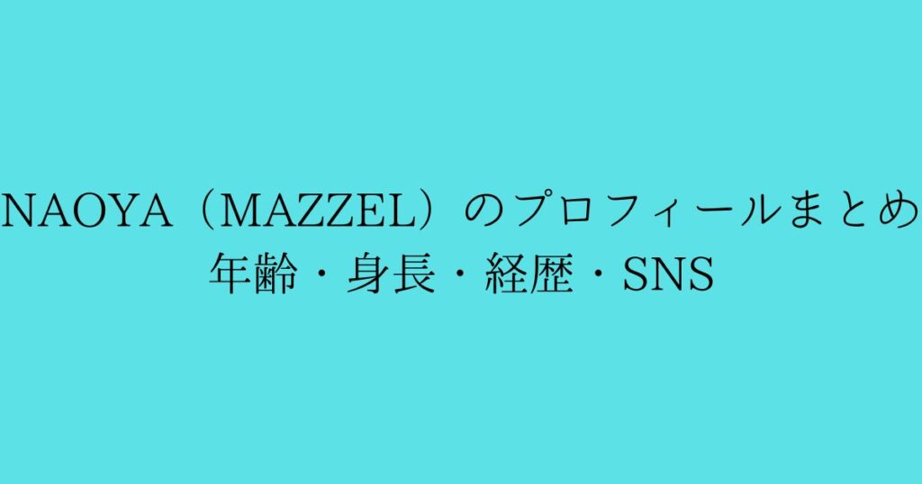 MAZZELのメンバーとして活動するNAOYAさん(紀田直哉)について、年齢・身長・経歴・SNS情報を公開情報ベースで整理しました。 同名人物が複数いるため、本記事は「MAZZELのNAOYA」を対象にまとめています。 NAOYA(MAZZEL)の年齢 公式プロフィールでは、... -