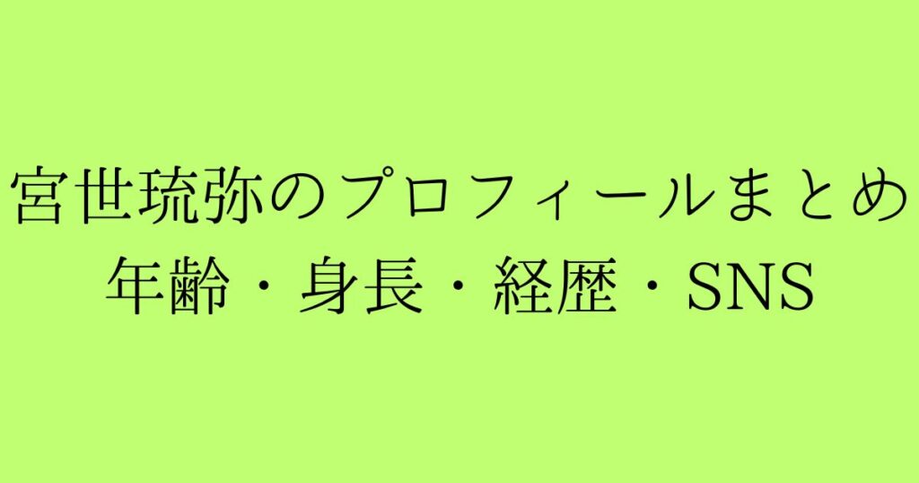 宮世琉弥のプロフィールまとめ年齢・身長・経歴・SNS